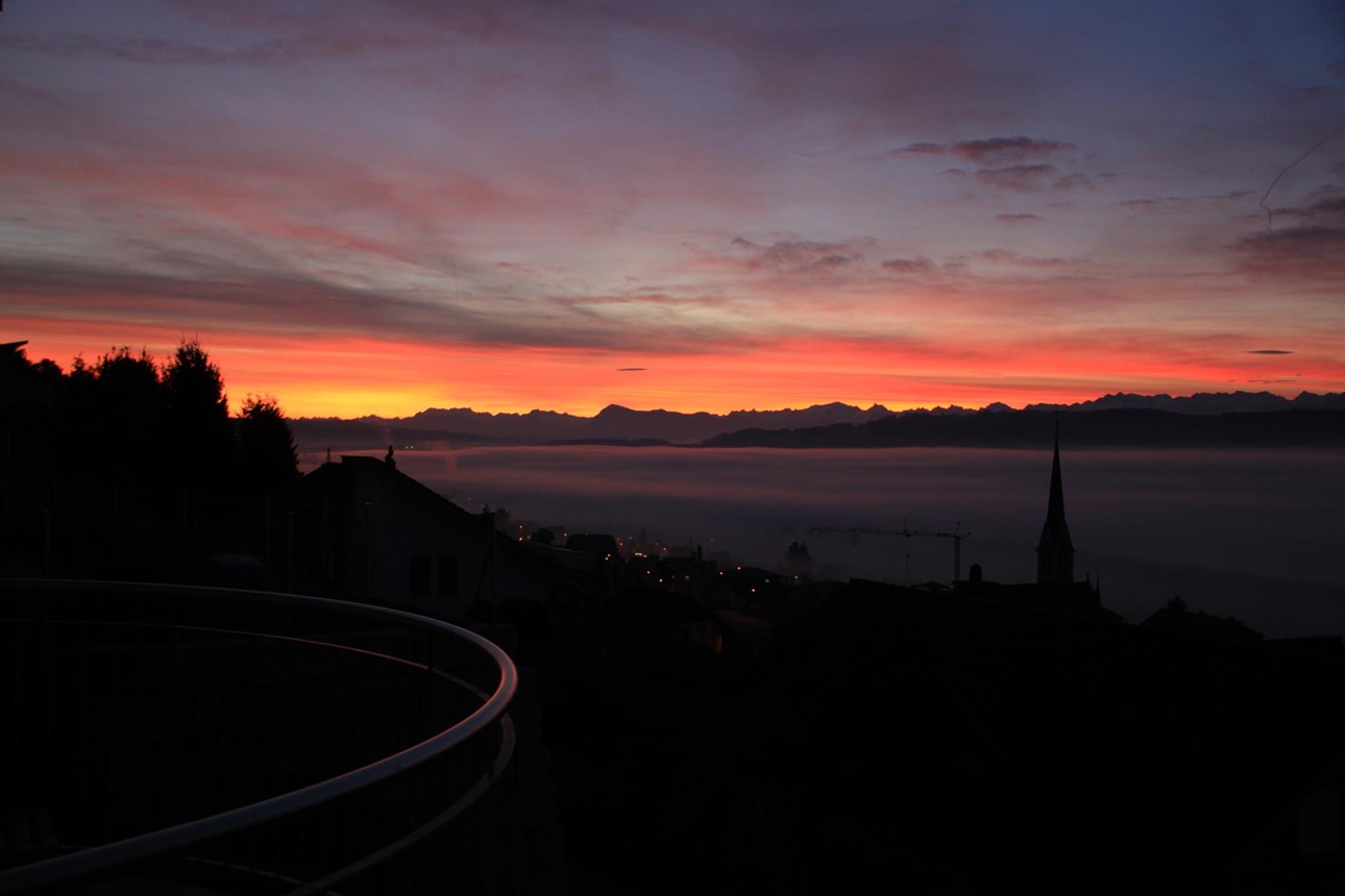 Die Sonne geht auf, der Tag erwacht. Ruhig liegt der Nebel im Tal bis die ersten Sonnenstrahlen den Tag einläuten.