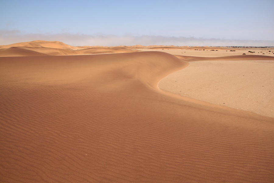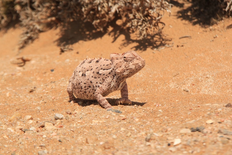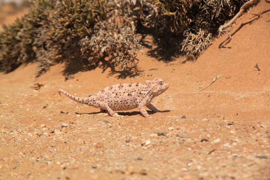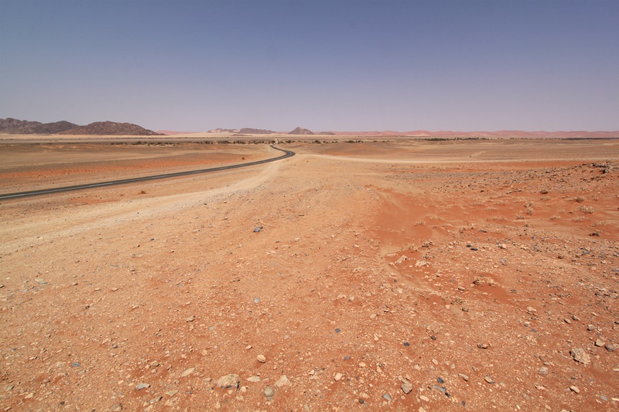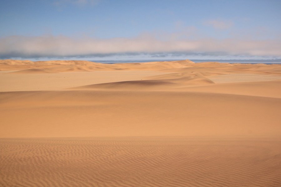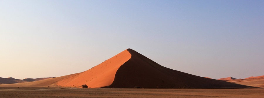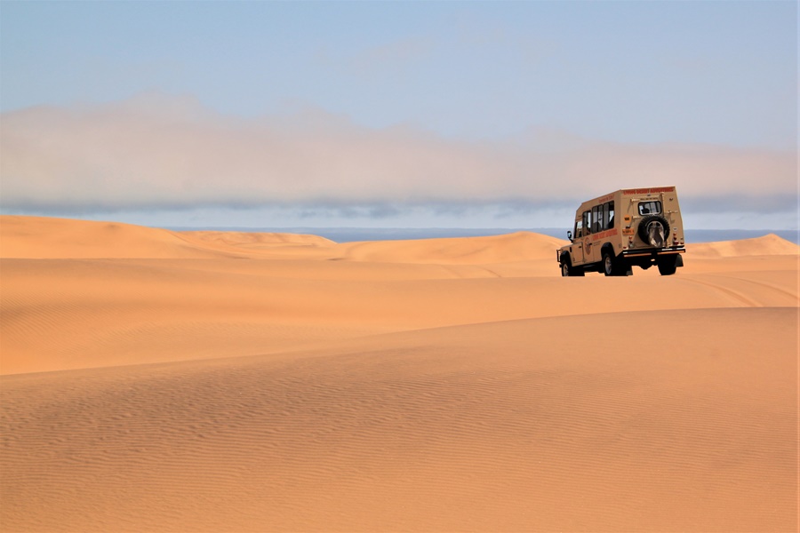 Die Ausdehnung der Namib beträgt von Norden (Benguela, Angola) nach Süden (bis zum Oranje) rund 2000 Kilometer, sie reicht bis 160 Kilometer in das Land hinein. Die Namib ist etwa 95.000 km² groß und liegt im Mittel knapp 500 Meter über dem Meeresspiegel. Das als UNESCO-Welterbe eingestufte „Namib-Sandmeer“ hat eine Fläche von rund 31.000 km², weitere 9.000 km² sind als Übergangszone (buffer zone) definiert.Die Namib ist mit einem Alter von rund 80 Millionen Jahren die älteste Wüste der Welt und zugleich einer der unwirtlichsten Orte des Planeten. Bei Tagestemperaturen deutlich über 50 °C, Nachttemperaturen von unter 0 °C, jahrzehntelang andauernden Trockenperioden sowie häufigen Sandstürmen sind Pflanzen und Tiere extremen Lebensbedingungen ausgesetzt. Da diese jedoch über sehr lange Zeiträume stabil geblieben sind, hat es doch eine ganze Reihe von Lebewesen geschafft, sich anzupassen und (nur) hier heimisch zu werden, wie zum Beispiel die Welwitschie (Welwitschia mirabilis).