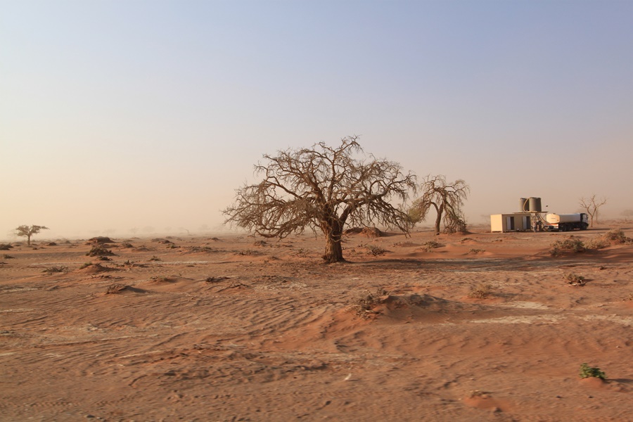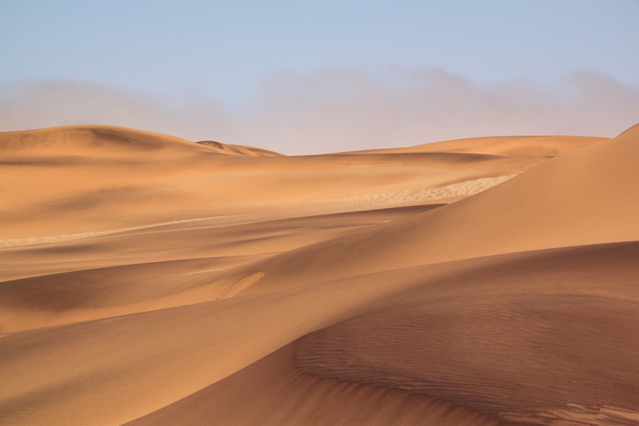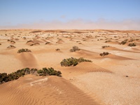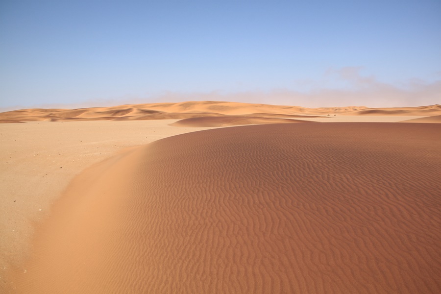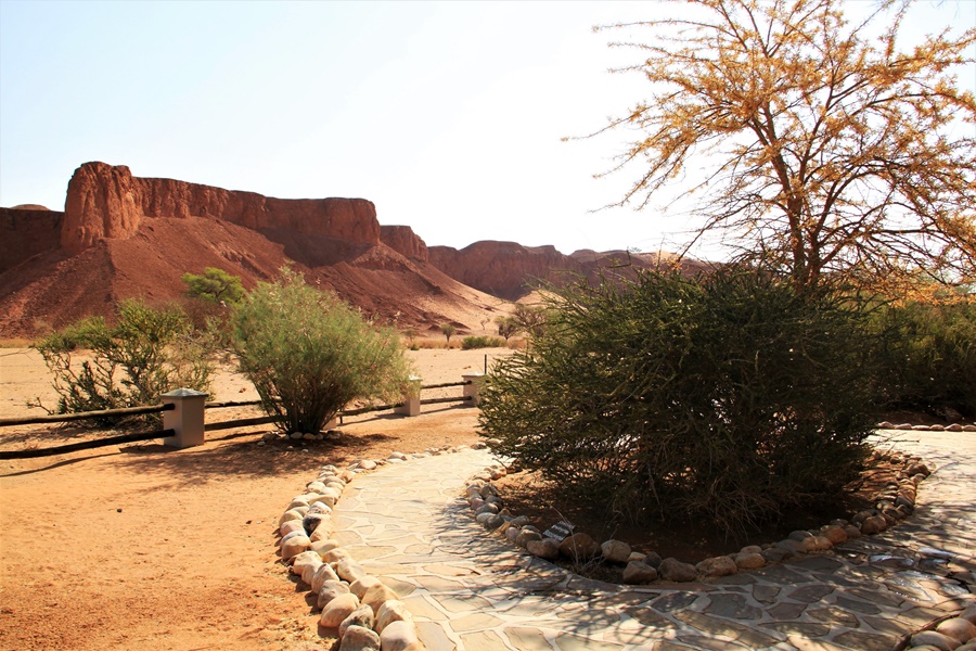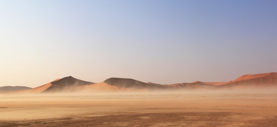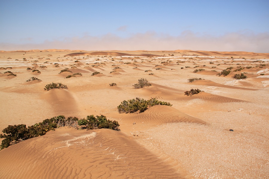 Die Ausdehnung der Namib beträgt von Norden (Benguela, Angola) nach Süden (bis zum Oranje) rund 2000 Kilometer, sie reicht bis 160 Kilometer in das Land hinein. Die Namib ist etwa 95.000 km² groß und liegt im Mittel knapp 500 Meter über dem Meeresspiegel. Das als UNESCO-Welterbe eingestufte „Namib-Sandmeer“ hat eine Fläche von rund 31.000 km², weitere 9.000 km² sind als Übergangszone (buffer zone) definiert.Die Namib ist mit einem Alter von rund 80 Millionen Jahren die älteste Wüste der Welt und zugleich einer der unwirtlichsten Orte des Planeten. Bei Tagestemperaturen deutlich über 50 °C, Nachttemperaturen von unter 0 °C, jahrzehntelang andauernden Trockenperioden sowie häufigen Sandstürmen sind Pflanzen und Tiere extremen Lebensbedingungen ausgesetzt. Da diese jedoch über sehr lange Zeiträume stabil geblieben sind, hat es doch eine ganze Reihe von Lebewesen geschafft, sich anzupassen und (nur) hier heimisch zu werden, wie zum Beispiel die Welwitschie (Welwitschia mirabilis).