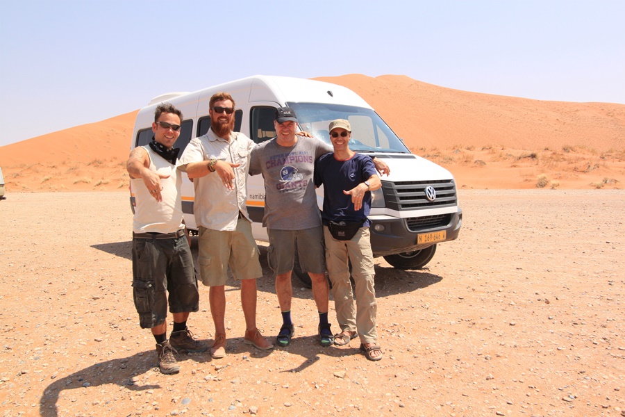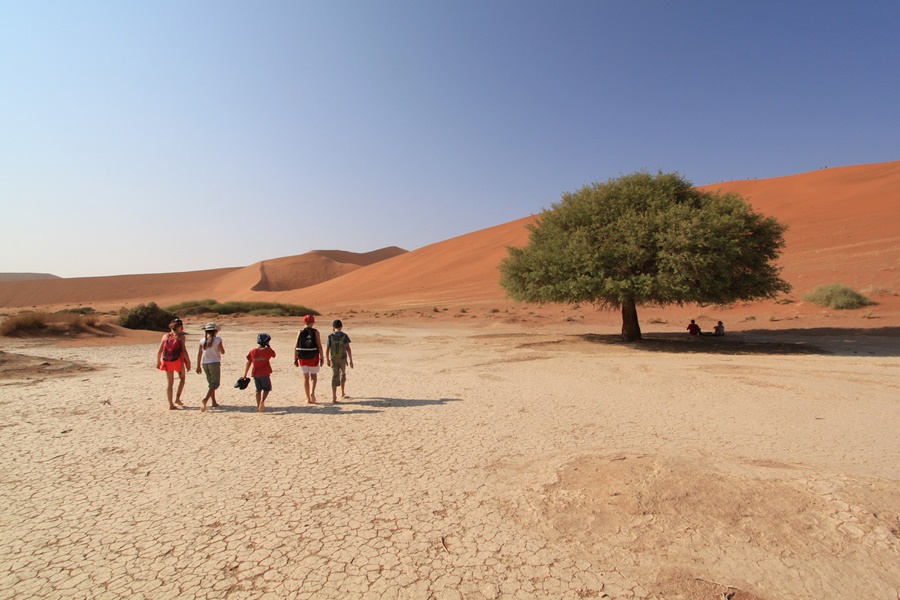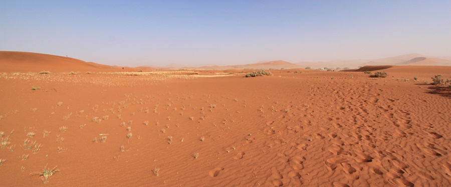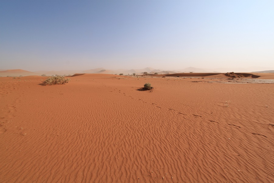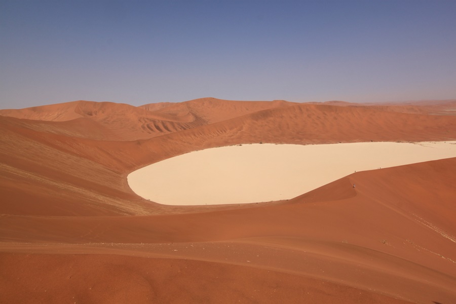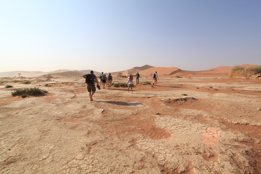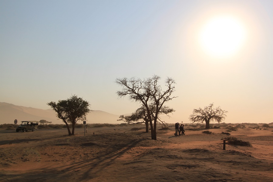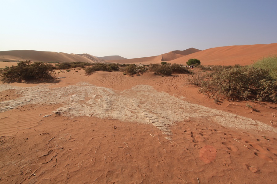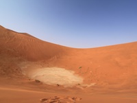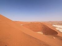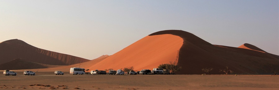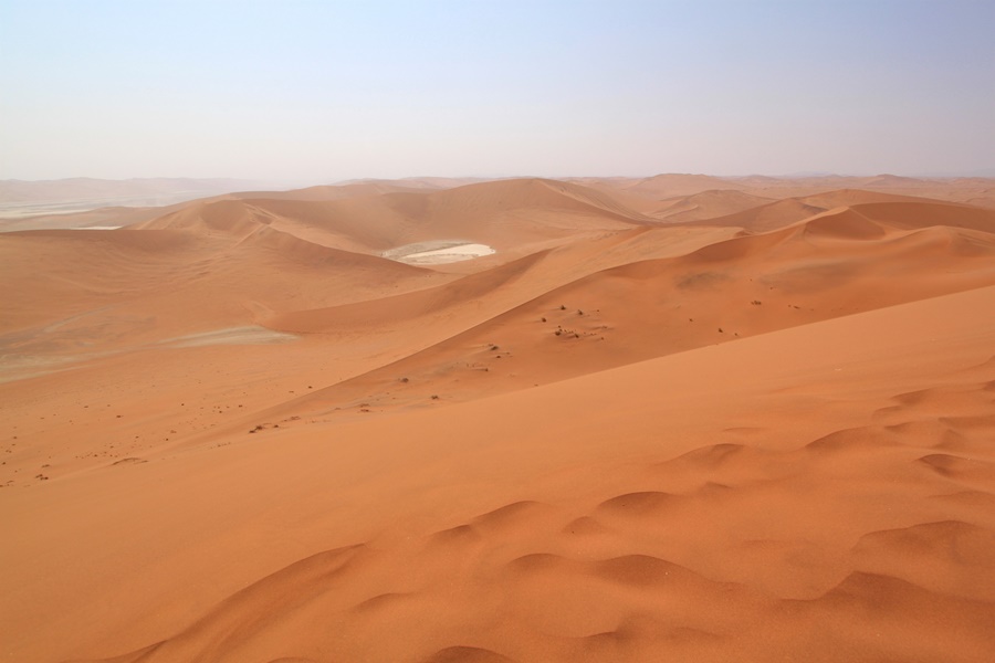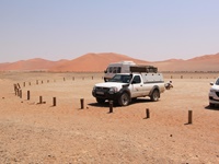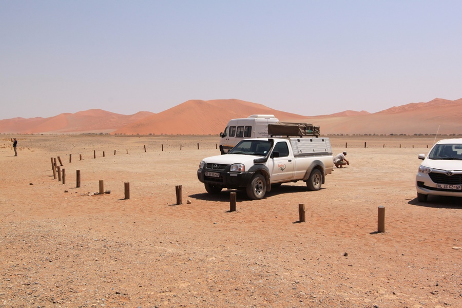 Der Übersichtlichkeit halber hat man die Dünen im Gebiet des Parks nummeriert. Einige Dünen im Gebiet des Sossusvleis sind besonders bekannt. Die bekannteste unter ihnen ist sicher die von den Einheimischen „Big Daddy“ oder „Crazy Dune“ genannte Düne. Mit rund 350 Metern Höhe soll „Big Daddy“ die höchste Düne der Welt sein. Zum Vergleich: Der Eiffelturm hat eine Höhe mit Antenne von 324 Meter. Ein Aufstieg kann gerade bei extremer Hitze zu einer ziemlichen Anstrengung werden. Oben werden die Dünenbesteiger mit einer wundervollen Aussicht über die umliegende Gegend belohnt. Hier unser "Gipfelfoto"
