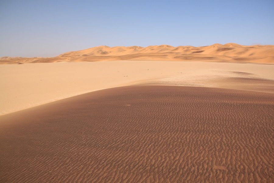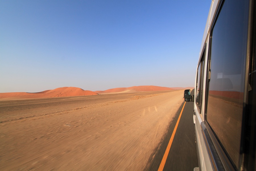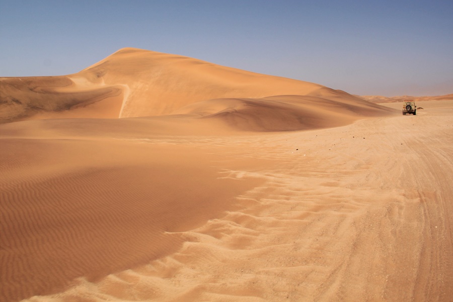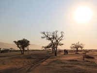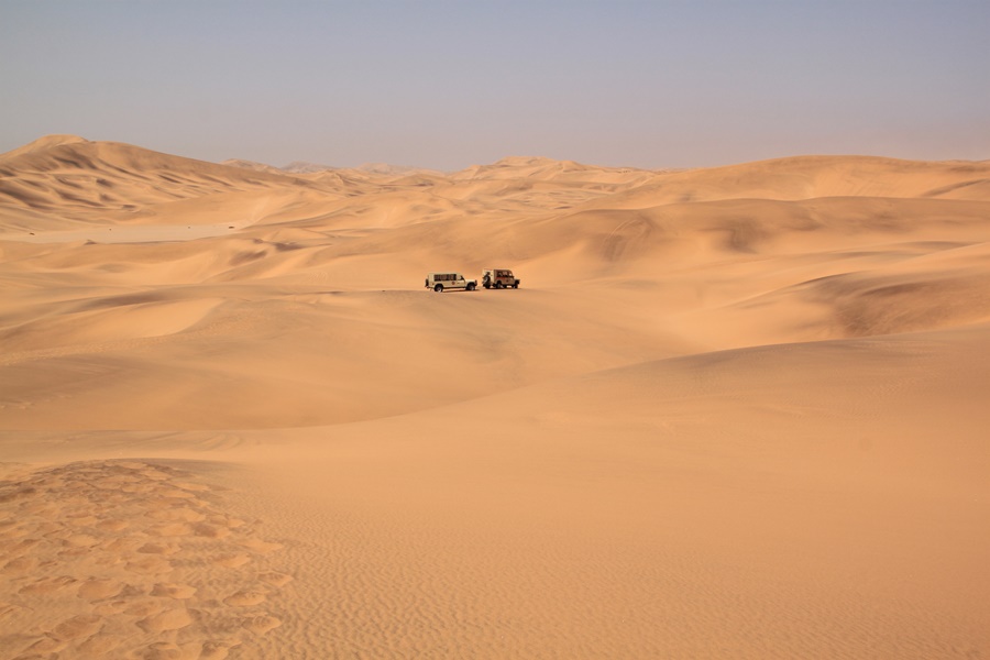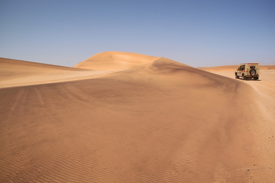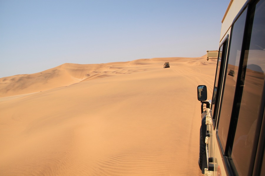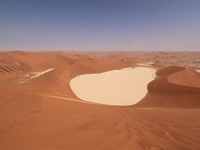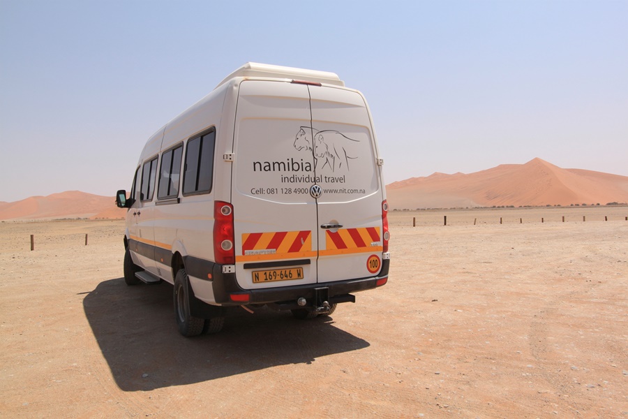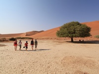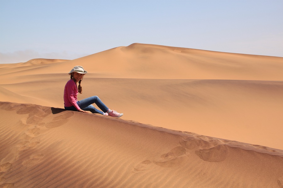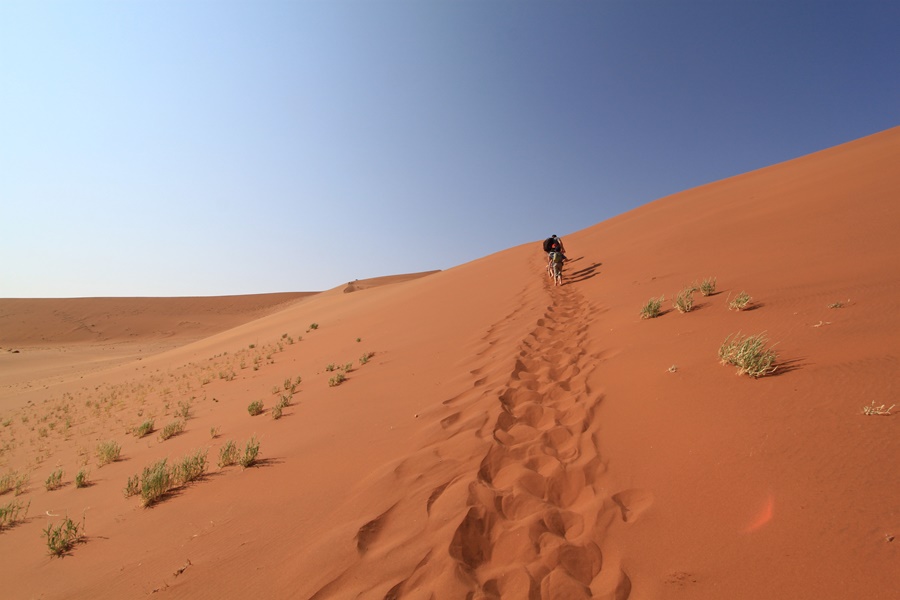 Der Übersichtlichkeit halber hat man die Dünen im Gebiet des Parks nummeriert. Einige Dünen im Gebiet des Sossusvleis sind besonders bekannt. Die bekannteste unter ihnen ist sicher die von den Einheimischen „Big Daddy“ oder „Crazy Dune“ genannte Düne. Mit rund 350 Metern Höhe soll „Big Daddy“ die höchste Düne der Welt sein. Zum Vergleich: Der Eiffelturm hat eine Höhe mit Antenne von 324 Meter. Ein Aufstieg kann gerade bei extremer Hitze zu einer ziemlichen Anstrengung werden. Oben werden die Dünenbesteiger mit einer wundervollen Aussicht über die umliegende Gegend belohnt. Hier unser "Gipfelfoto"