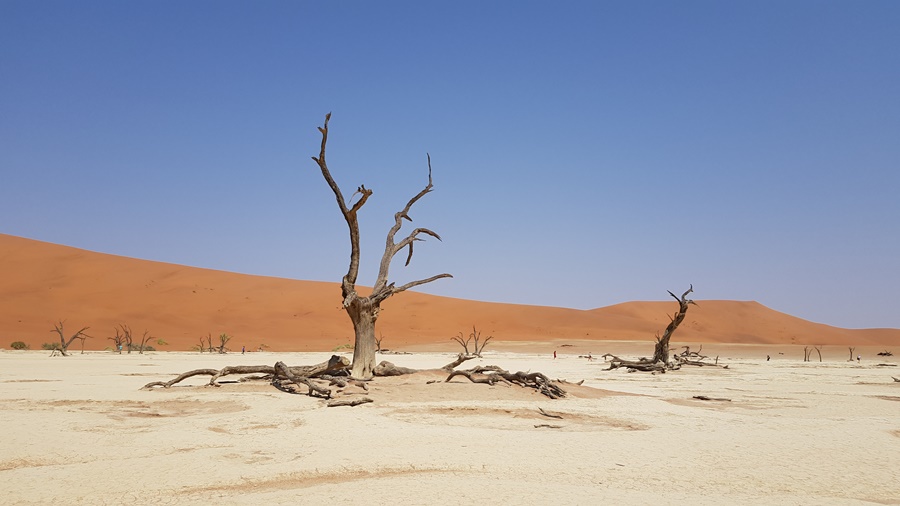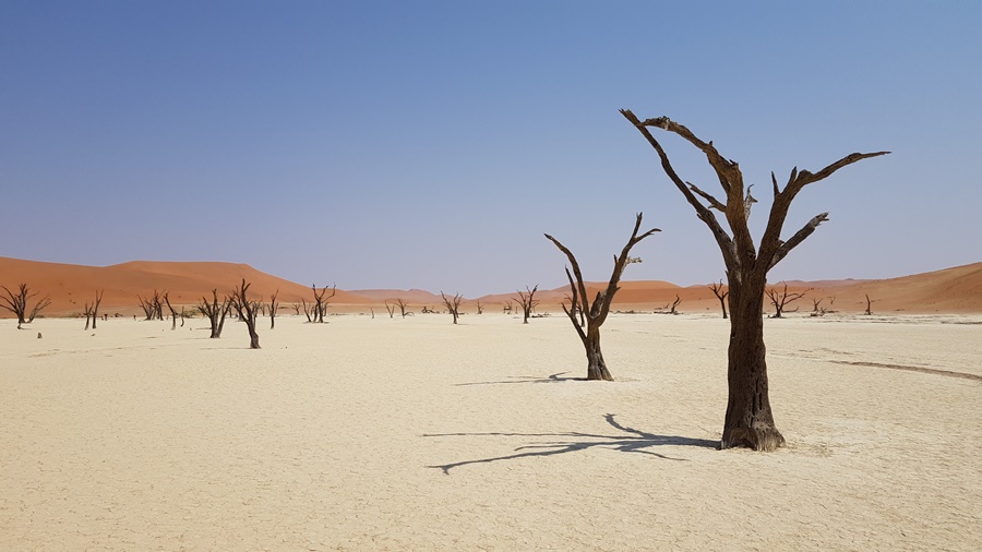 Charakteristisch für das Deadvlei sind die vielen abgestorbenen Akazienbäume, die vertrockneten, als der Tsauchab, ein ephemerer Trockenfluss, seinen Flusslauf änderte, und nun sehr langsam verrotten. Manche dieser Bäume sind über 500 Jahre alt. Das Deadvlei ist Teil des Namib-Naukluft-Nationalparks und liegt benachbart zu dem Sossusvlei, dem Narravlei und dem Hiddenvlei.