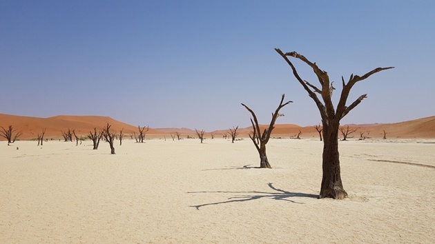 Das Deadvlei (von englisch dead und Afrikaans Vlei [fləi̯] für Senke), auch Dead Vlei geschrieben, liegt in Namibia und ist eine von Namibsand-Dünen umschlossene Ton-Pfanne, unweit des Sossusvlei.