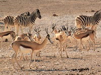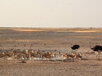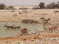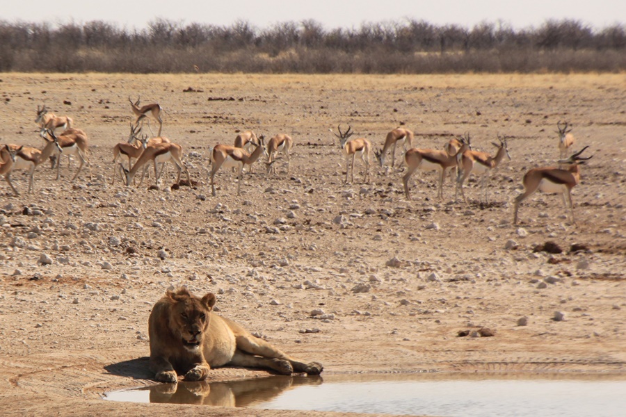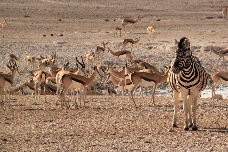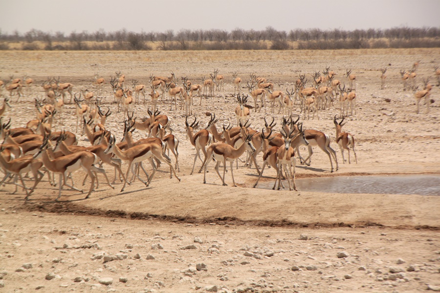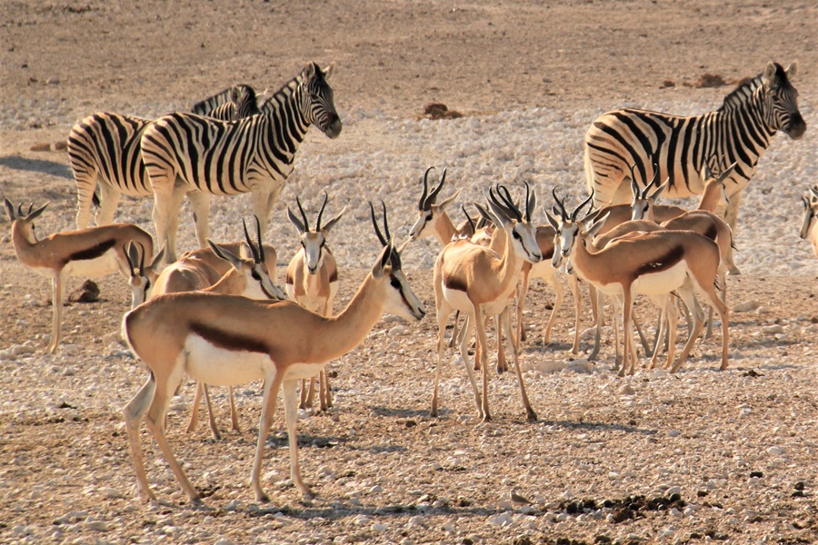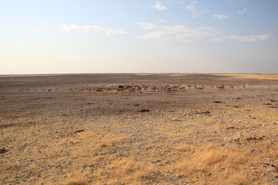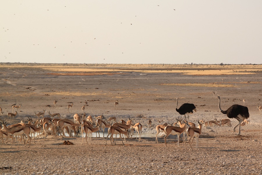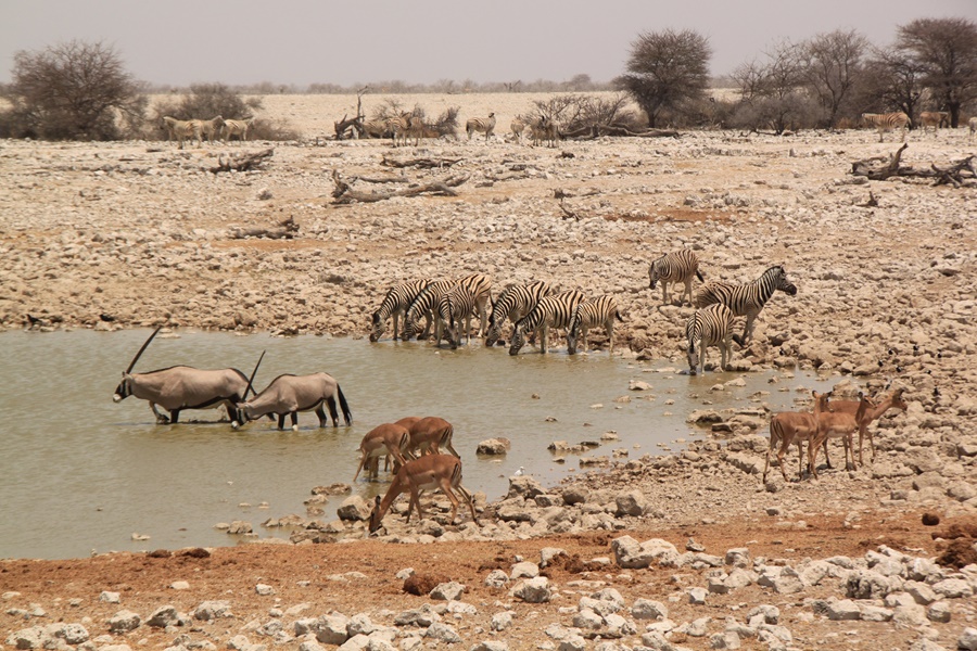 Der Etosha-Nationalpark beherbergt eine sehr große Vielfalt an Großtierarten. Man findet hier bis auf Krokodile, Flusspferde und Büffel nahezu alle Großtierarten des südlichen Afrika. Seit der Einzäunung im Jahre 1973 ist es den Tieren nicht mehr möglich, den Park zu verlassen – sie sind auf das Nahrungsangebot im Park angewiesen.