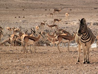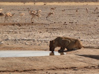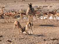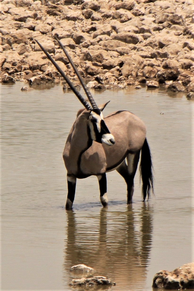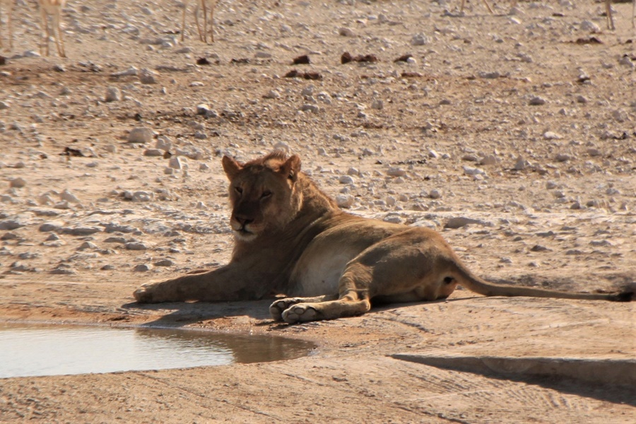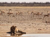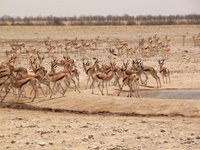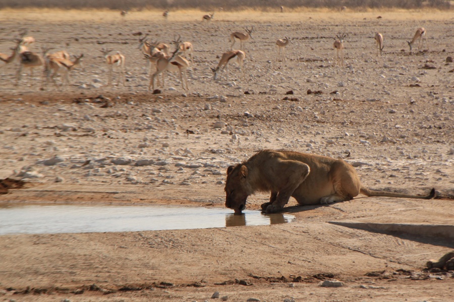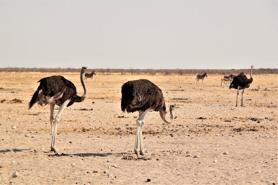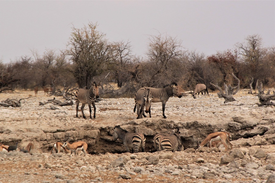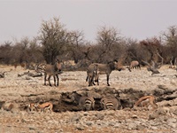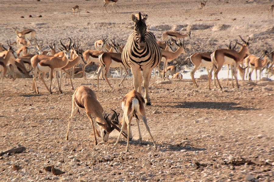 Der Etosha-Nationalpark beherbergt eine sehr große Vielfalt an Großtierarten. Man findet hier bis auf Krokodile, Flusspferde und Büffel nahezu alle Großtierarten des südlichen Afrika. Seit der Einzäunung im Jahre 1973 ist es den Tieren nicht mehr möglich, den Park zu verlassen – sie sind auf das Nahrungsangebot im Park angewiesen.