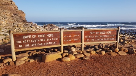 Das Kap der guten Hoffnung auf der Kaphalbinsel südlich von Kapstadt zählt zu den magischsten Plätzen der Welt. Fast jeder Weltenbürger hat schon einmal von diesem sturmumtosten Kap an der Süd(west)spitze Afrikas gehört, wo zahllose Schiffe untergingen und sich der Atlantik mit dem Indischen Ozean trifft. Touristen werden im Großteil des Jahres jedoch von einer ruhigen See empfangen, die einen kilometerweiten Blick erlaubt. Ein Besuch des südlichsten Punkt Afrikas ist ein absolutes Must! Um irgendwelchen Kommentaren vorzubeugen: Cape Agulhas ist selbstverständlich der südlichste Punkt Afrikas, das Kap ist nur der „südwestlichste“ Punkt. Thema geklärt. Für den Besuch des Kap der guten Hoffnung sollte man einen ganzen Tag einplanen. Die Entfernung beträgt zwar nur ca. 40 km, es gibt aber unterwegs viel zu sehen.